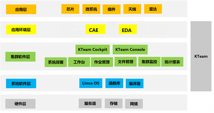 KTeam是基爾科技自主研發(fā)的高性能協(xié)同設(shè)計仿真軟件平臺,可實現(xiàn)設(shè)計與計算集群資源統(tǒng)一部署、使用、瀏覽、管理、監(jiān)控和統(tǒng)計等,可大幅提高仿真效率,簡化平臺管理。KTeam由應(yīng)用工作臺、作業(yè)調(diào)度模塊、文件管理模塊、集群監(jiān)控模塊、資源統(tǒng)計模塊組成。選用KTeam及其相關(guān)服務(wù),可以幫助用戶部署操作系統(tǒng),安裝和測試集群軟件以及應(yīng)用環(huán)境,基于高性能集群硬件設(shè)備,提供傳統(tǒng)的設(shè)計環(huán)境和高速的仿真體驗。